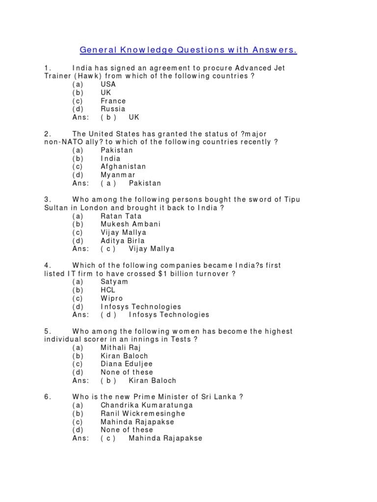 Which of the following group of states is the largest producer of tea? Keep updated with these important gk questions. General knowledge also refers to having some knowledge about the most common things in the well answering a few easy general knowledge questions that are how. General knowledge questions & answers. Many candidates are looking for general knowledge questions and answers (সাধারণ জ্ঞান প্রশ্ন ও উত্তর) in bengali language in internet.